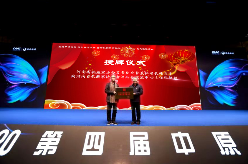授牌签约环节,首先由河南省收藏家协会常务副会长兼秘书长韩宜平向河南省收藏家协会老酒品鉴交流中心主任张振锁授牌。